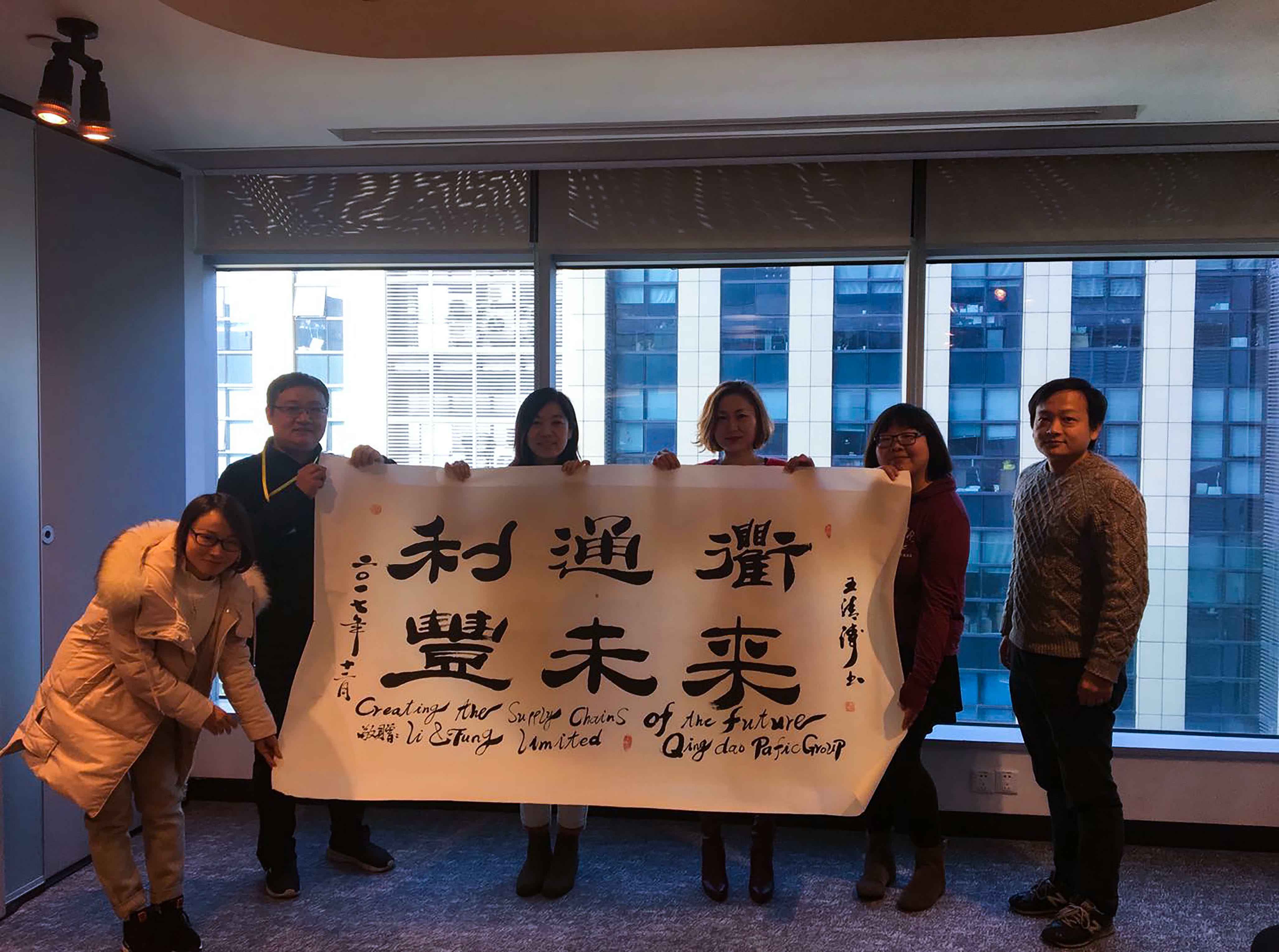 Pafic团队去利丰集团旗下DSG公司拜访洽谈合作项目,并赠与“利通渠、丰未来”的题字来表达双方价值观的统一。